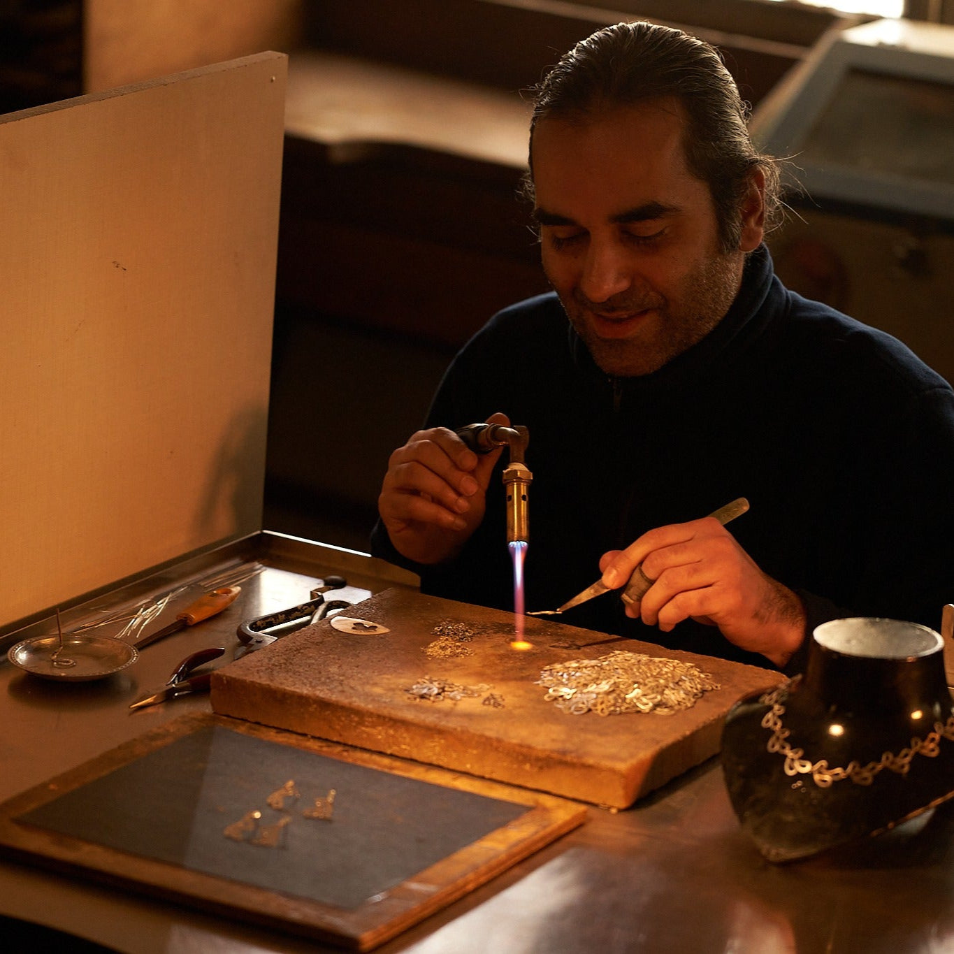Atelier Kelim’de her tasarım sade bir fikirle başlar. 925 ayar gümüş, İstanbul’daki atölyemizde usta ellerde heykelsi bir forma dönüşür ve mat dokusuyla Atelier Kelim’e özgü karakter kazanır.
